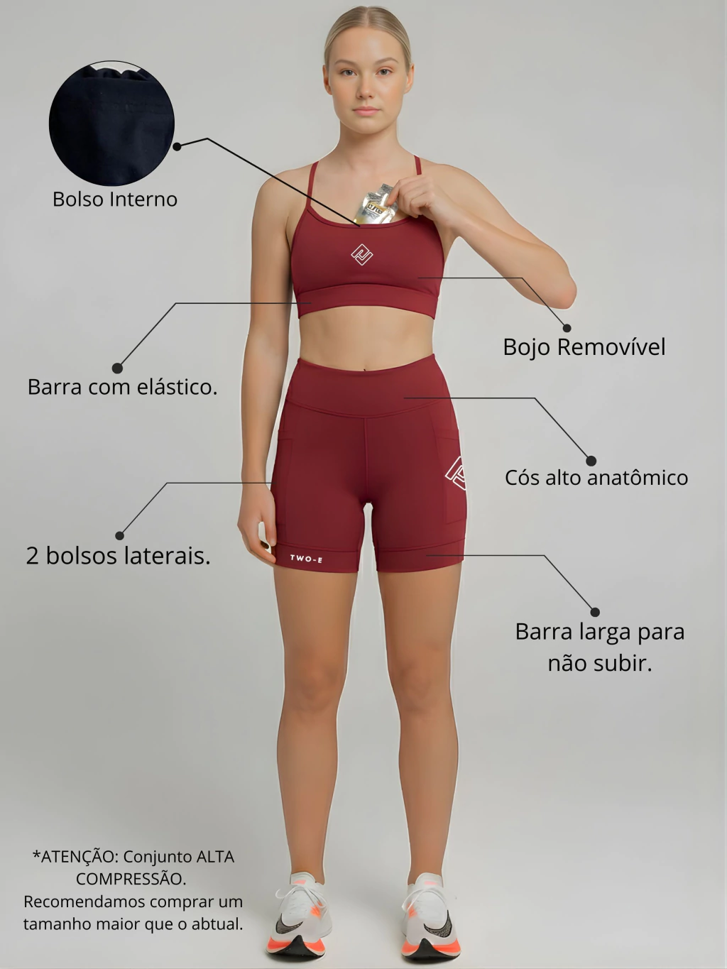 Descubra o Conjunto POWERFIT da Two-E, a combinação perfeita entre alta performance, suporte inteligente e design moderno para seus treinos e dia a dia.